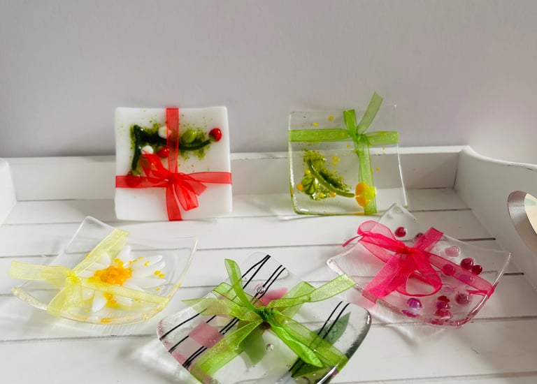 At Gill Grove Glass, we specialize in handmade fused glass creations. Each piece is crafted with passion, ensuring that our art brings beauty and elegance to your home or special occasion.